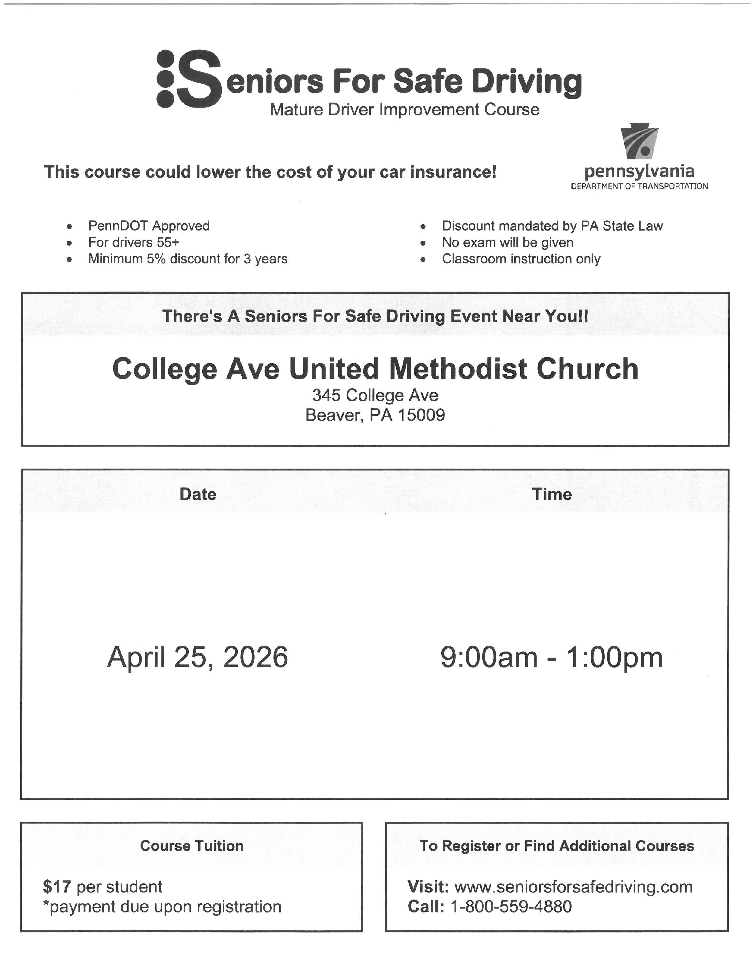 Mature Driver Improvement Course for those over 55.